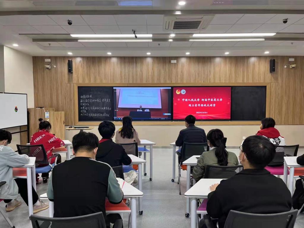 本网讯(文/郭薇 图/史一戈)逐梦新征程,奋进向未来。2022年3月16日晚,校团委组织“筑梦英才”实践班学员在教学实验大楼A629教室,与中国人民大学学子线上同上一堂思政课,第十三届全国政协常委、经济委员会副主任、世界银行原高级副行长兼首席经济学家林毅夫教授做了题为《百年未有之大变局与新结构经济学自主理论创新》的专题报告。“筑梦英才”实践班、“青苗”预科班学员代表聆听了报告,讲座由校团委副书记黄怡博主持。