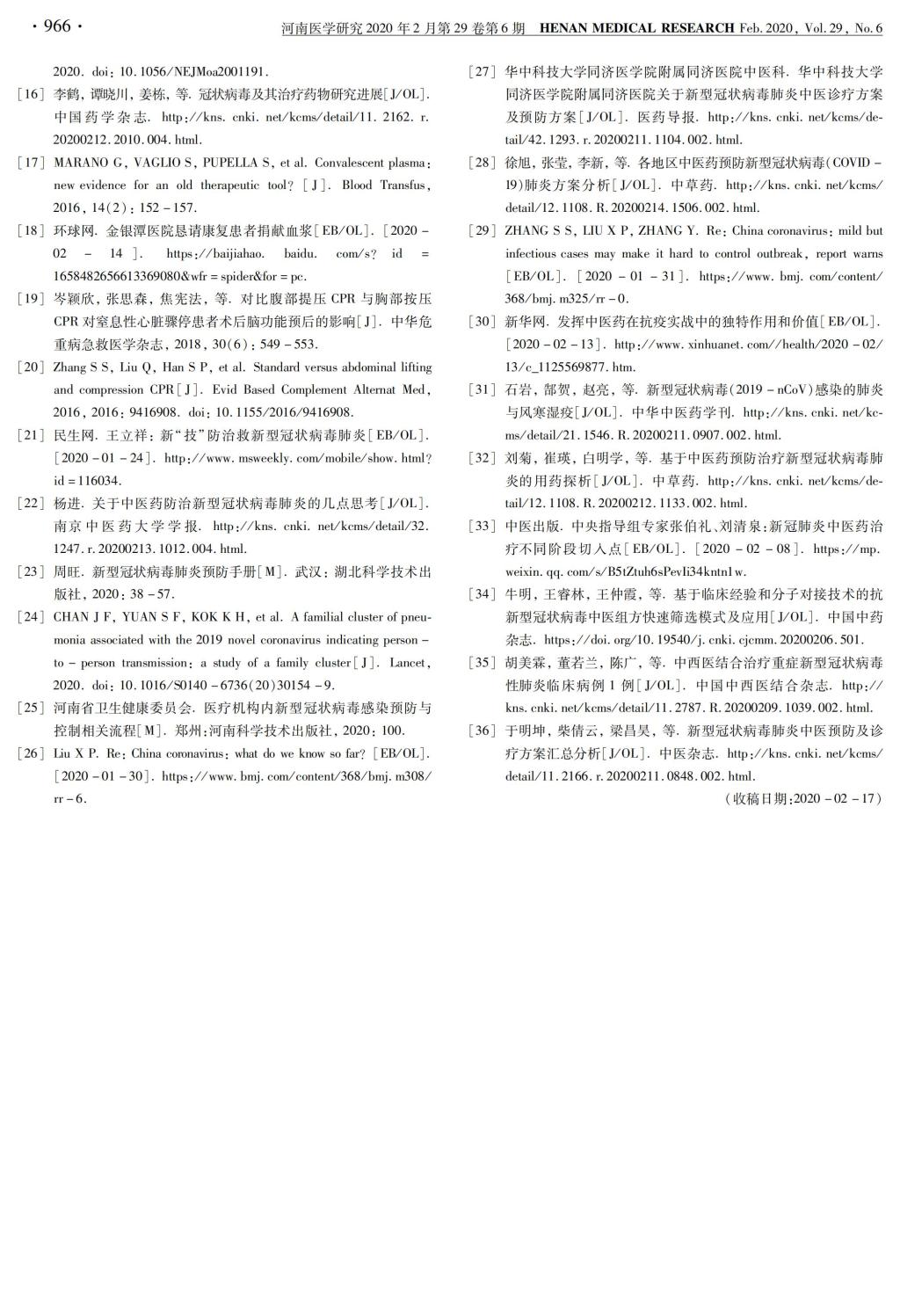 编者按:2020年2月21日,《河南医学研究》杂志在线发表了《中西医结合主动应对新冠病毒疫情防控》一文。该文深入分析了中西医结合疗法在当前新冠肺炎疫情防控中的独特重要作用,着重强调了在新冠肺炎危重症救治中应用腹部提压心肺复苏创新技术的重要意义,这项新技术在前不久刚刚获得河南省科技进步奖二等奖,属于产学研一体化的独角兽创新技术。该论文作者为我校第五临床医学院研究生刘晓鹏,第五临床医学院、附属人民医院院长郝义彬,解放军总医院第一医学中心孟庆义教授,通讯作者为我校心肺脑复苏研究中心主任、附属人民医院副院长张思森。现予以转发。