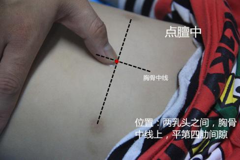 穴位四:膻中穴,可止咳化痰、开胸顺气。