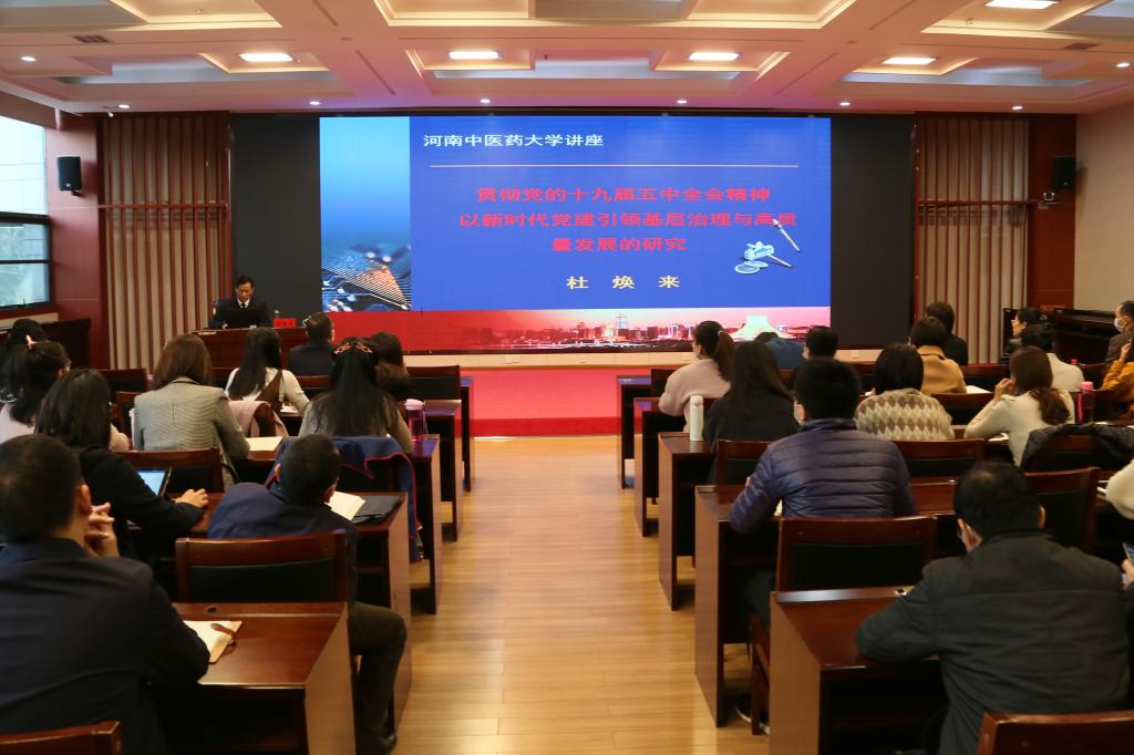 本网讯(文图/庞亚宾)2020年11月12日上午,河南省委政策研究室杜焕来博士应邀做客我校公共管理论坛,作题为《贯彻党的十九届五中全会精神 以新时代党建引领基层治理与高质量发展的研究》的专题讲座。我校管理学院、马克思主义学院的教师、研究生、本科生100余人聆听报告。报告由管理学院院长张丽青教授主持。