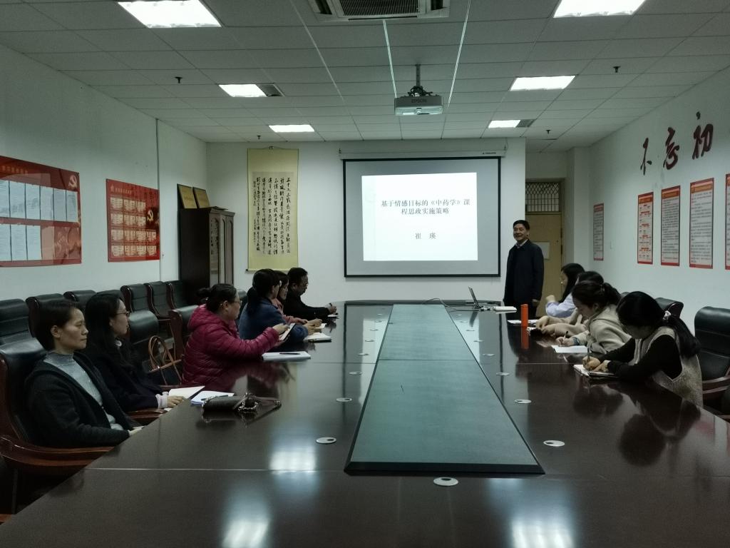 崔瑛作题为《基于情感目标的<中药学>课程思政实施策略》的专题讲座,介绍了情感目标和课程思政的内涵及两者的关系,指出情感目标与课程思政相向而行,通过情感目标开展课程思政是可行途径。崔瑛以实例发掘《中药学》情感教学素材,讲解了情感目标在教学过程中的实施原则和课程设计,并强调情感目标是开展课程思政的合理切入点,通过课程情感目标,可以达到课程思政润物无声的效果。
