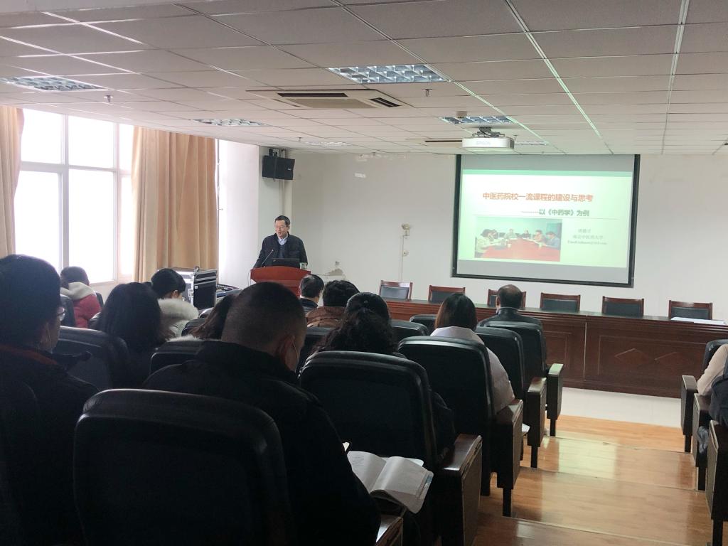 本网讯(文图/邵沛璐)2020年12月3日,南京中医药大学教授、博士生导师唐德才应邀作客我校百家论坛,作题为《中医药院校一流课程的建设与思考--以中药学为例》的专场讲座,我校100多名师生聆听了讲座。讲座由药学院副院长崔瑛主持。