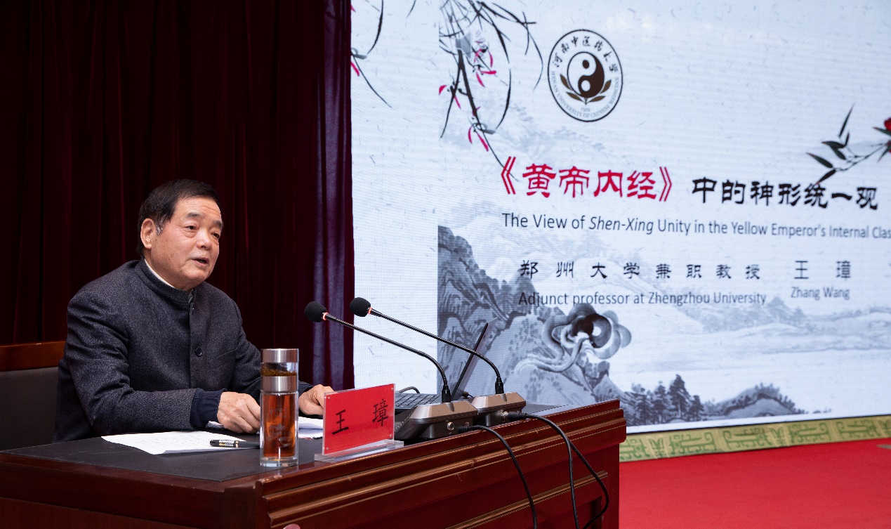 王璋教授以踏雪寻梅的情怀与中医药结缘30余年,他潜心钻研《周易》与《黄帝内经》,理论功底深厚,以发扬中医药文化和服务社会的责任感将所学应用于实践,著书立说。王璋教授以《<黄帝内经>中的神形统一观》为题,从《内经》神形统一观的主要内涵、《内经》神形统一观的多元文化理论支撑和《内经》告诉我们如何做到神与形俱三个方面展开,详细讲解了中医学“神、形”理论的来源和应用。同时,他结合医案从“以易解医”“学易释医”的独特视角分析,重视发挥神志作用,讲述了中医学“神形一体观”在老年失眠症防治等方面的应用。讲座结束后,王璋教授与参会学生在如何学好中医药等方面进行友好交流,王教授毫无保留地将个人所学所悟与大家分享。
