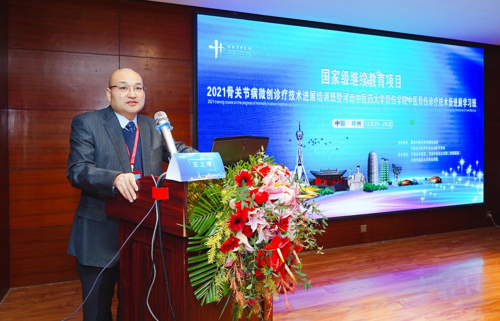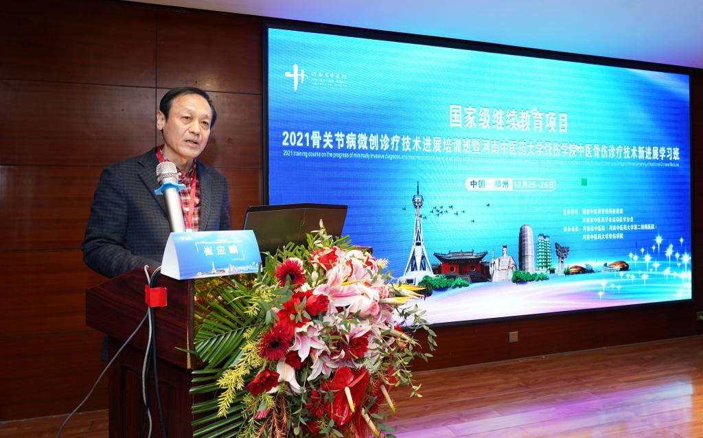 本网讯(文/沈锦涛 图/王汀)2021年12月25至26日,由国家中医药管理局继续教育委员会、河南省中医药学会运动医学分会主办,二附院、华体会体育网页版登录入口,华体会(中国)骨伤学院承办的“骨关节病微创诊疗技术进展培训班暨华体会体育网页版登录入口,华体会(中国)骨伤学院中医骨伤诊疗技术新进展学习班”在郑州举办。二附院、华体会体育网页版登录入口,华体会(中国)骨伤学院院长崔应麟,华体会体育网页版登录入口,华体会(中国)骨伤学院执行院长郑福增,河南省医学会骨科学分会主任委员、河南省人民医院高延征教授出席了开幕式,国内外骨科同道及骨伤学子线上线下近3万人共同参会。开幕式由华体会体育网页版登录入口,华体会(中国)骨伤学院副院长王上增主持。