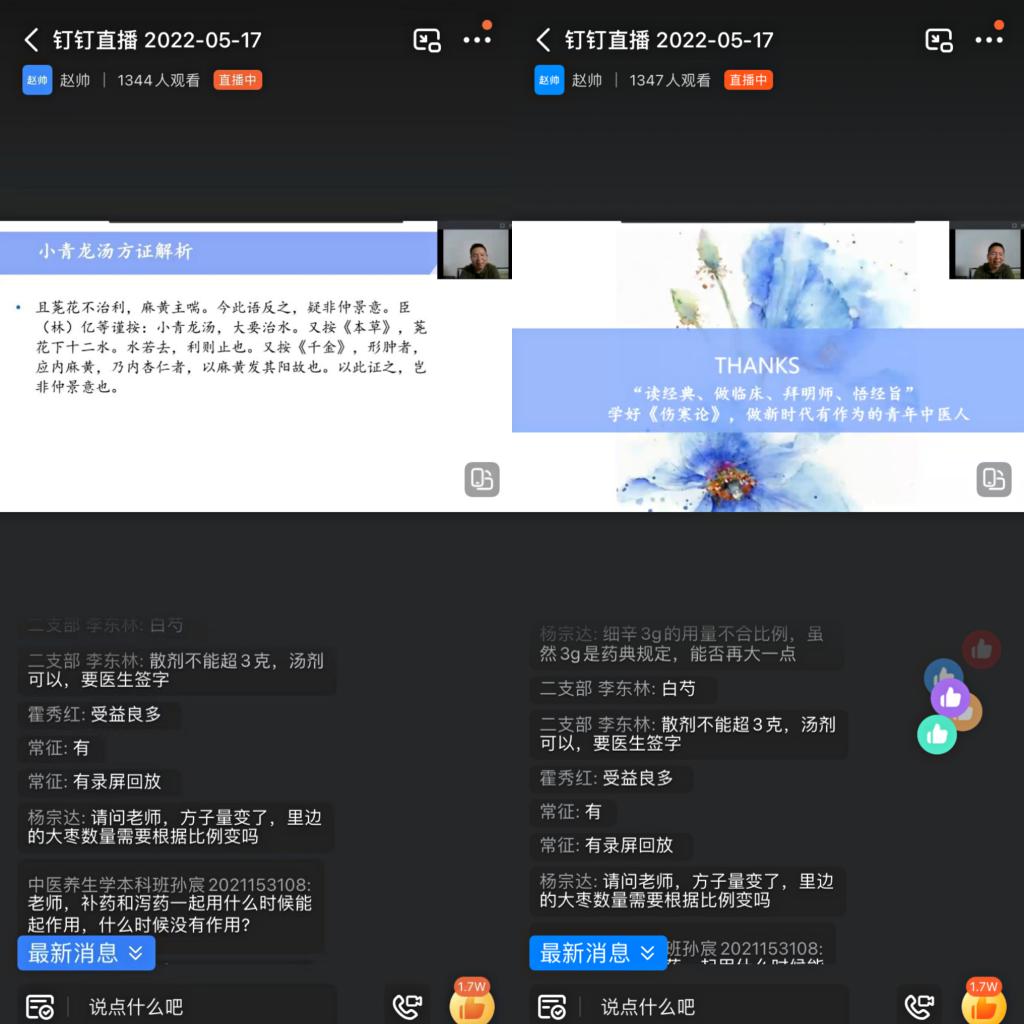 中医文化的精髓需要代代相传,更需要继承和发扬。本次精彩的云端学术讲座理论深邃、案例典型,进一步夯实了同学们的理论基础,帮助同学们坚定了专业信心,明确了努力方向,有助于同学们在实践中更好地“诠释伤寒、运用伤寒、发展伤寒”,对加强我校学风建设,继承和发扬中医药文化精髓具有深刻意义。