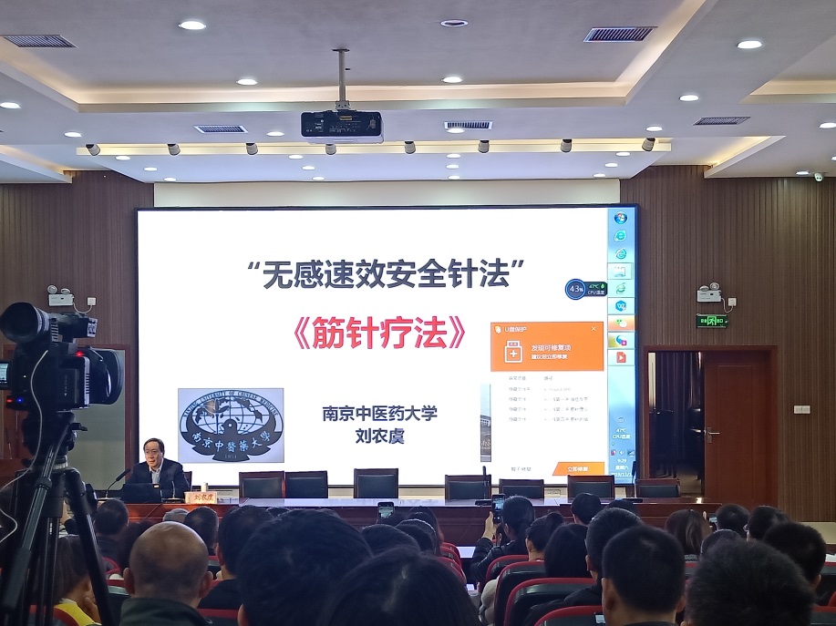 本网讯(文/乔敏 图/李鉴朔)2019年11月16日上午,南京中医药大学研究生导师刘农虞教授应邀做客我校百家论坛,作《无感速效安全针法—筋针疗法》专题讲座。针灸推拿学院、第三附属医院院长张大伟,副院长胡斌,高希言教授出席讲座,我校教师、研究生、本科生近200人聆听了专题讲座。