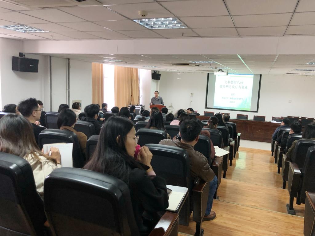 本网讯(文/李汉伟 图/邵沛璐)2019年12月7日下午,西安交大一附院临床研究中心副主任吕军副研究员应邀做客我校百家论坛,作题为《大数据时代的临床研究设计与实施》的专场报告。我校师生代表百余人参加讲座。